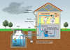 SAINT PEE SUR NIVELLE, Juillet 2015. Récupérateur eau de pluie "silencieux", avec indicateur de niveau, idéal pour WC, machine à laver et robinet de puisage. La cuve est en béton enterrée de 5 m3.